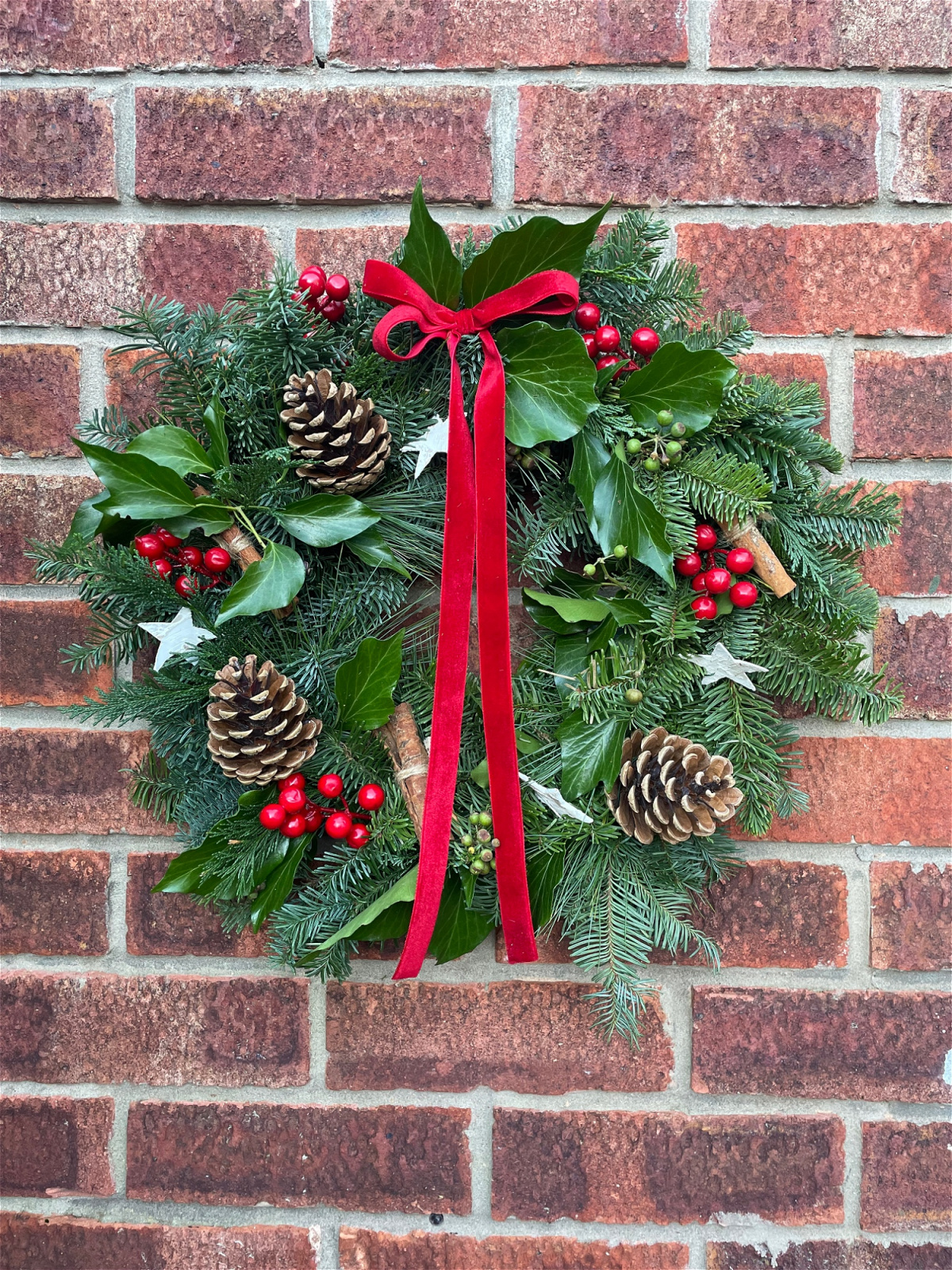 Choose from a traditional wreath with pinecones, cinnamon sticks etc or chose you colour scheme and style .